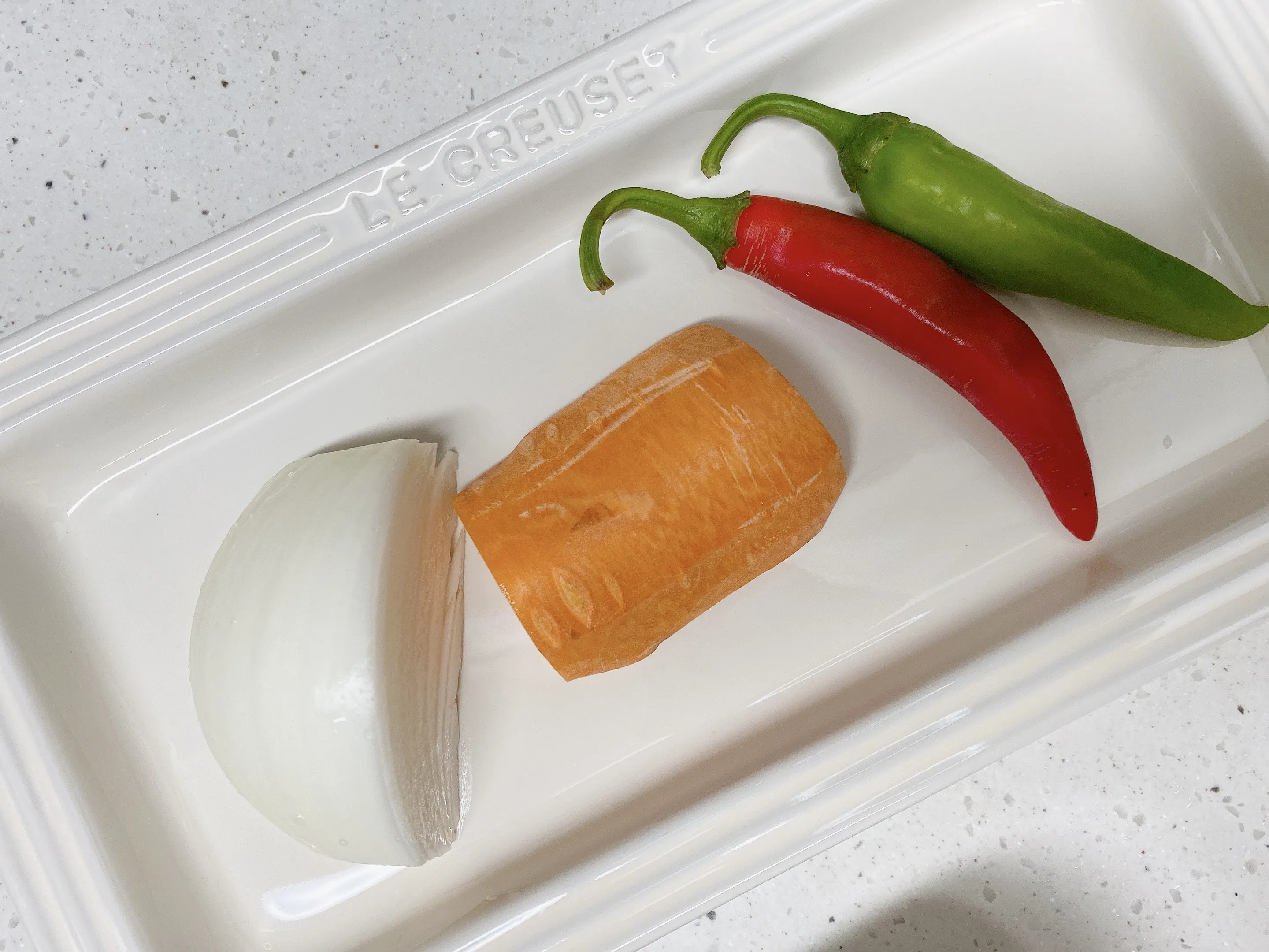 염장미역줄기 300g, 양파 1/4개, 청양고추 2개, 당근 조금, 국간장 1큰술, 다진 마늘 2/3 큰술, 카놀라유, 참기름
