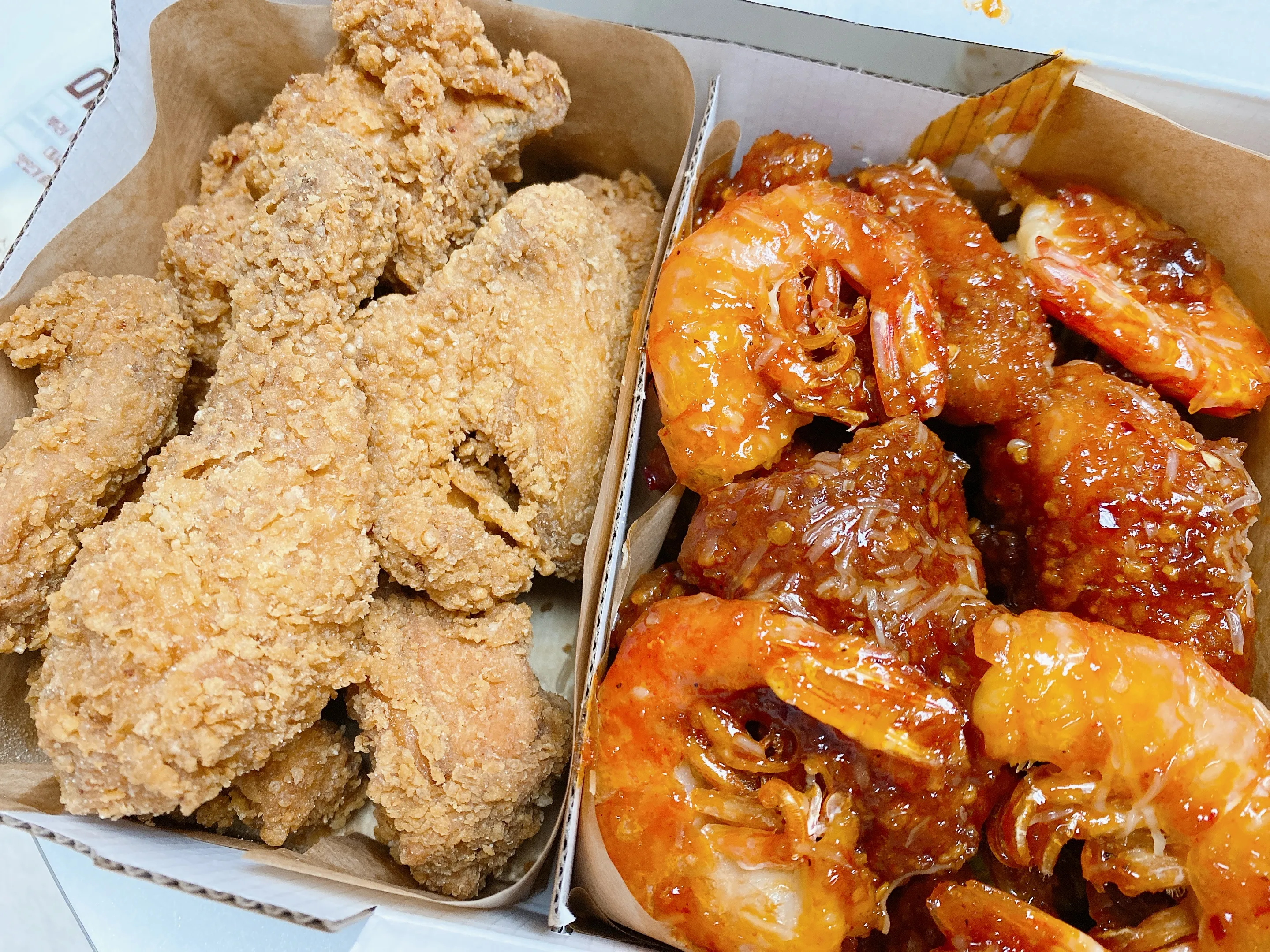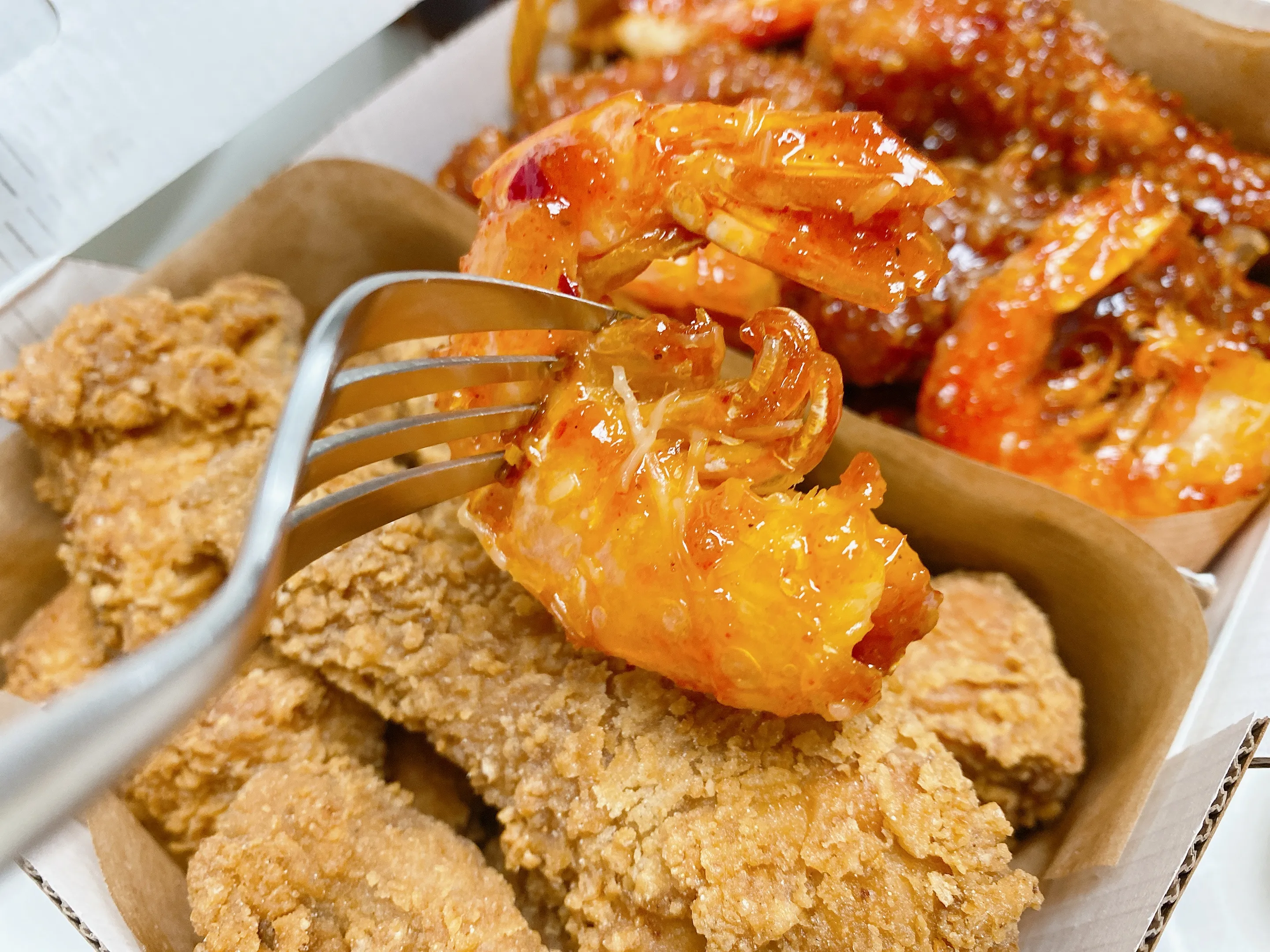 바른치킨의 대새레드는 탱글한 랍스터 새우와 72시간 숙성된 매운맛 소스가 어우러진 메뉴로 새우가 4마리가 들어있어요. 새우를 좋아하고 매콤한 맛을 좋아하는 저에겐 딱인 메뉴!