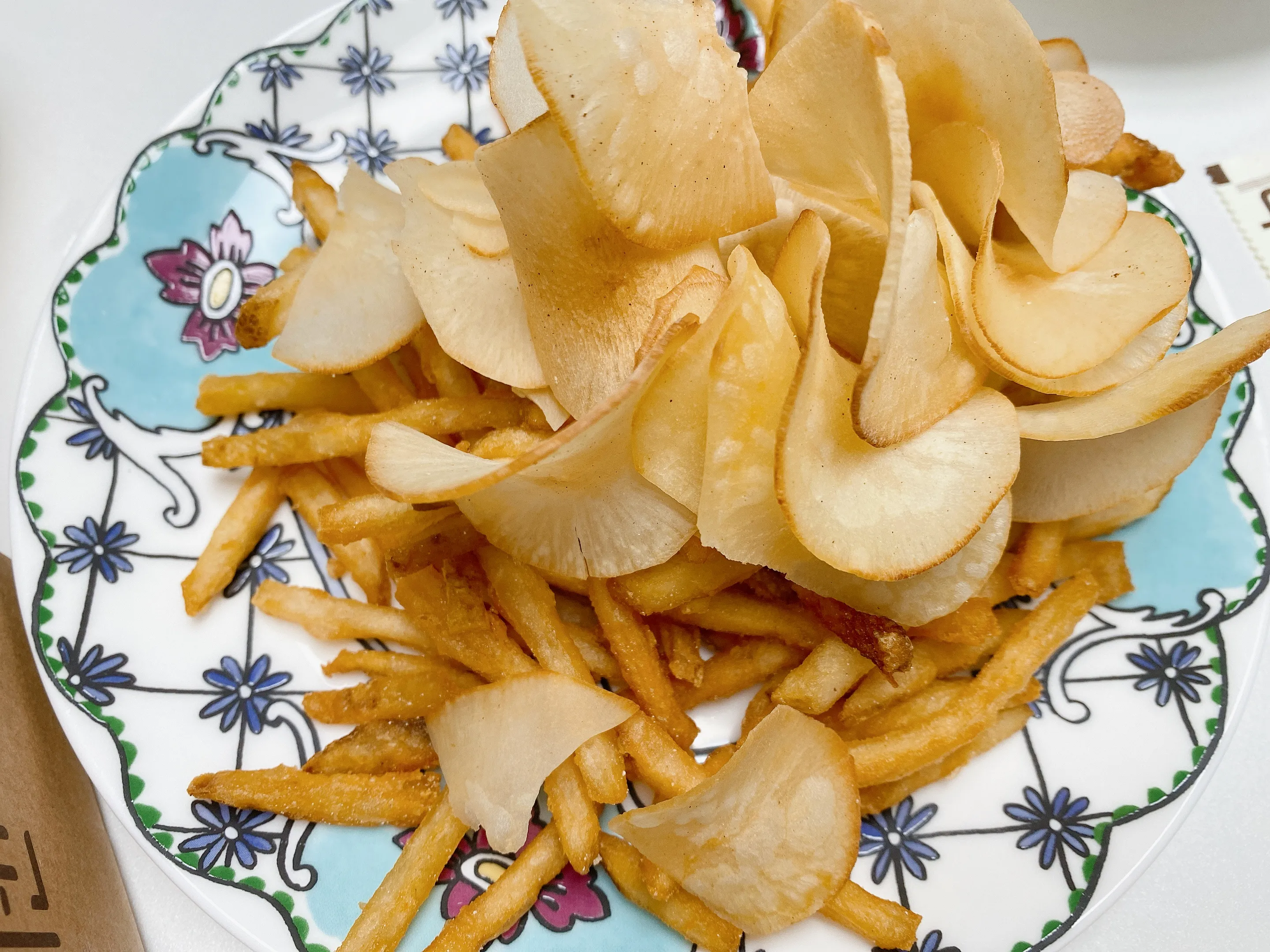 카사바칩과 감자튀김은 아무리 먹어도 질리지 않는 것 같아요. 서비스로 받은 감자튀김까지 합치니 양이 꽤 많아졌습니다.