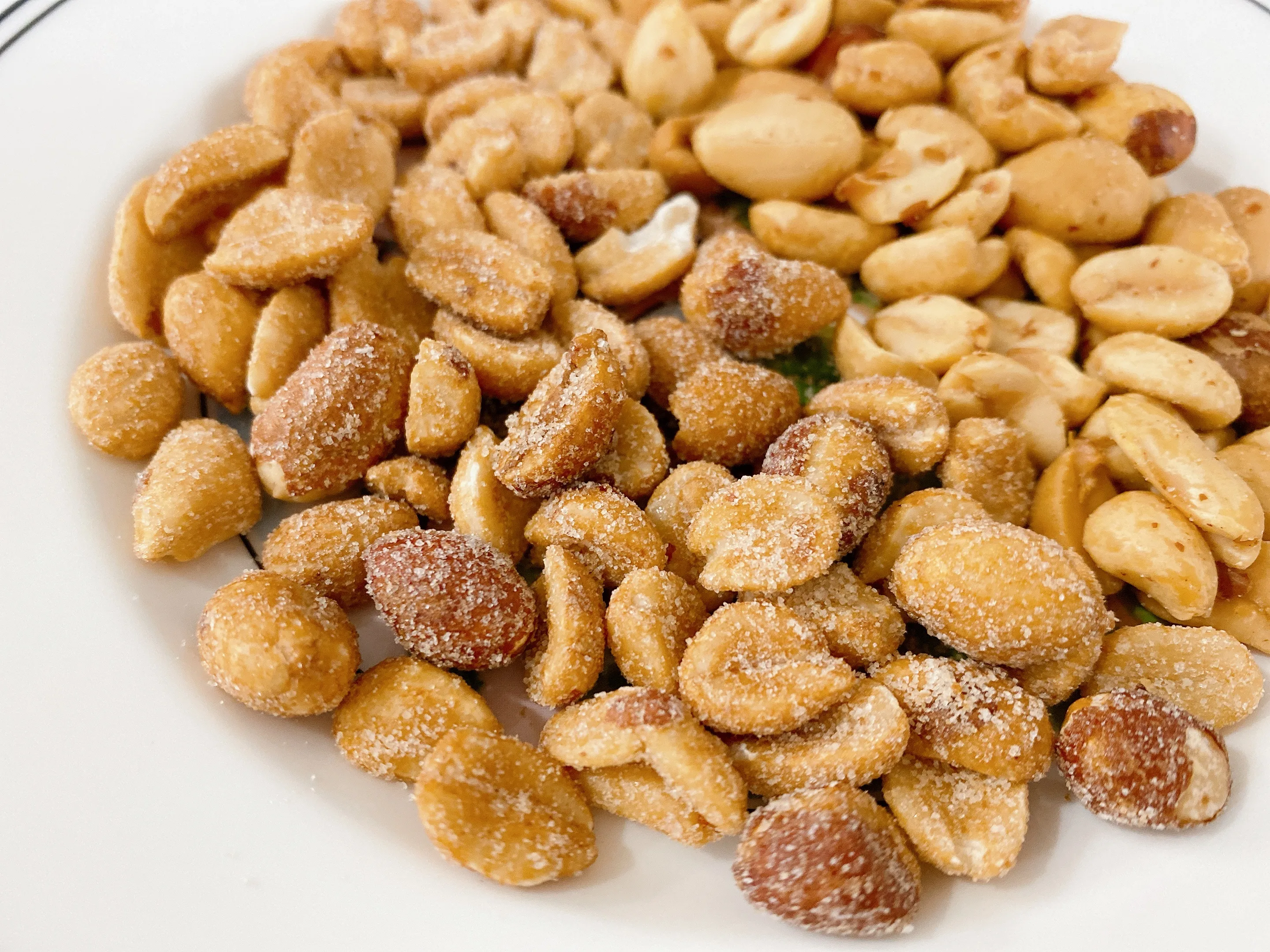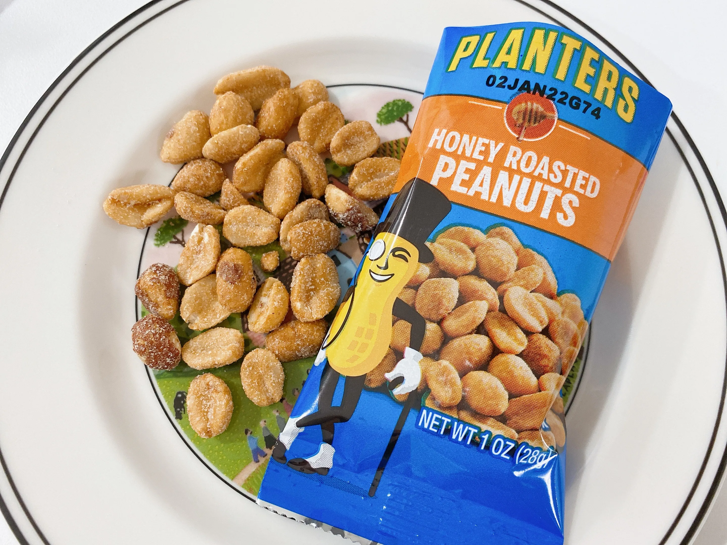 플랜터스 허니로스티드피넛에는 구운 땅콩의 겉에 설탕이 살짝 묻혀있어 달달하게 먹기에 좋답니다. 그렇다고 커피땅콩처럼 엄청나게 단 맛은 아니고 적당하게 달짝지근한 맛입니다.