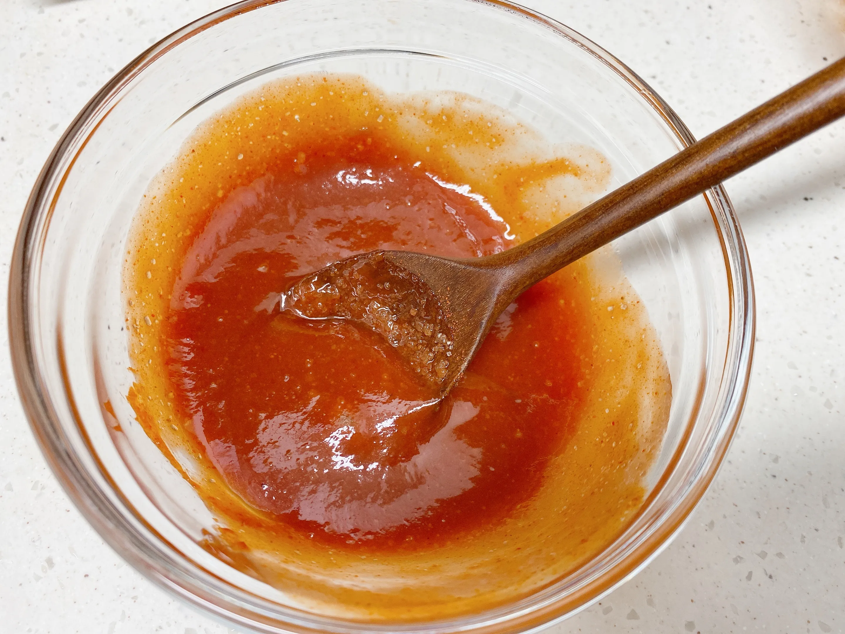2. 다음으로는 쏘야 소스를 만들어주세요. 소스는 케찹 3스푼, 고추장 1/2스푼, 설탕 1스푼, 물엿 1스푼, 돈까스소스 2스푼을 넣고 잘 섞어주세요.