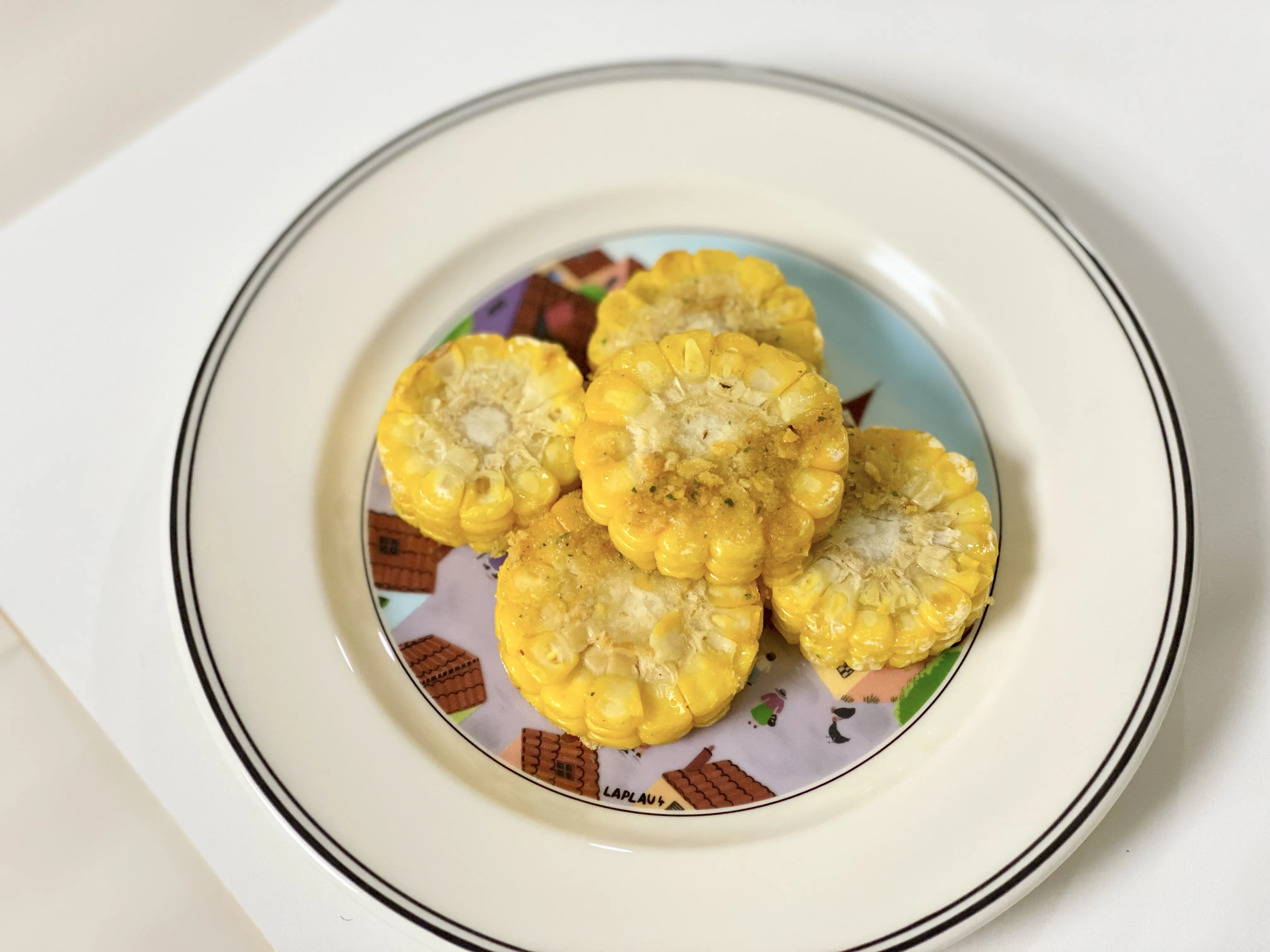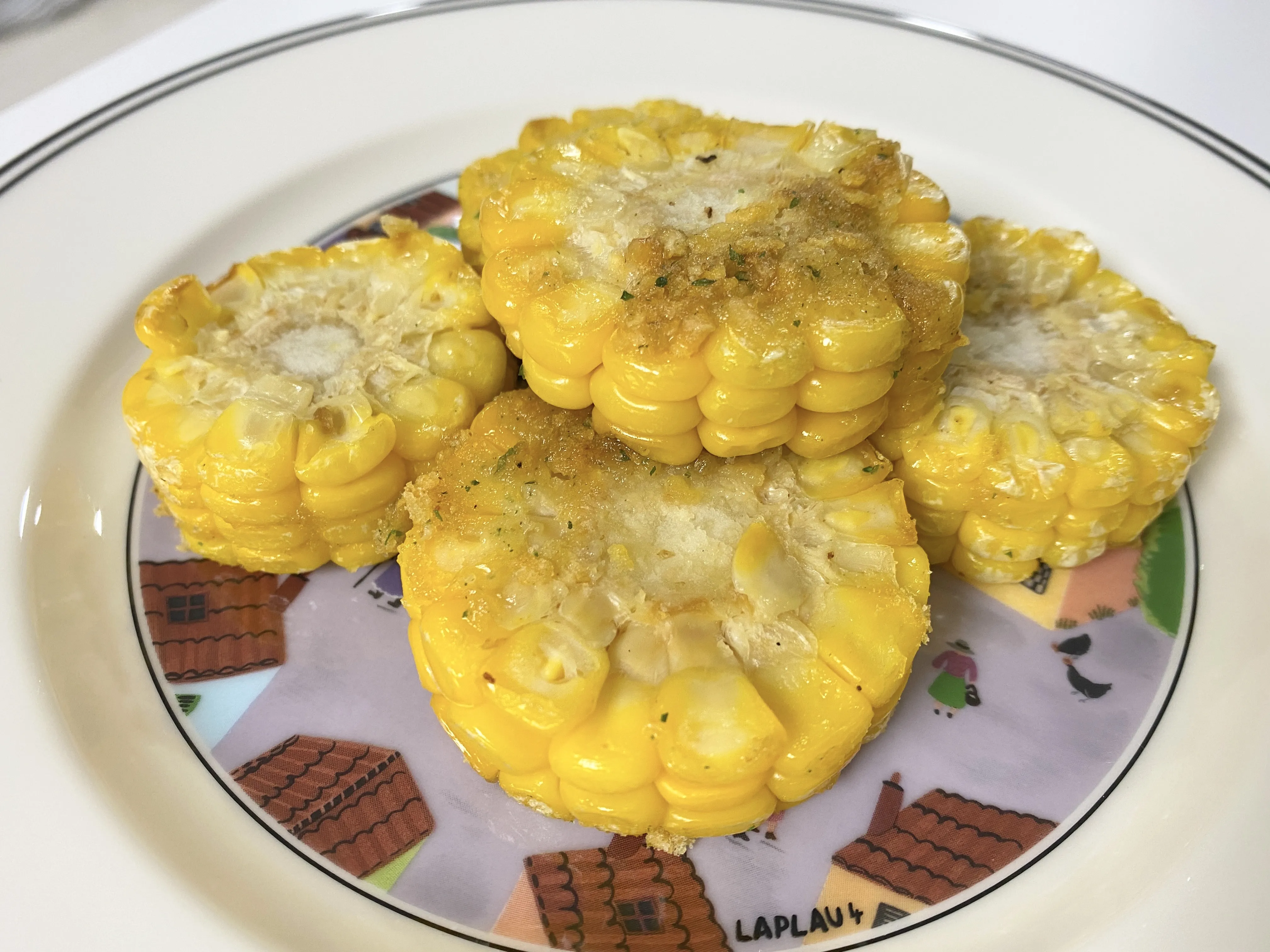 푸라닭 콘소메이징이 특별했던 건 실제 구운 옥수수가 함께 들어가 있다는 점이었는데요. 구운 옥수수는 몇 개나 들어있을지 궁금해서 다 꺼내봤어요. 😂 그릇에 꺼내어보니 총 5 조각이 들어있더라고요. 콘소메시즈닝이 뿌려진 구운 옥수수는 그 맛이 아주... 말해 뭐해요!